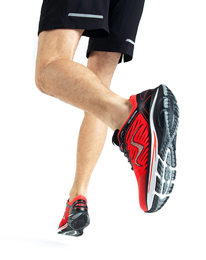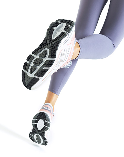 • Sensor-Technologie Fersenbasiertes System, das Stöße absorbiert, den Vortrieb unterstützt und die Belastung reduziert.